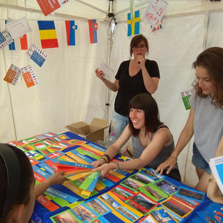 Nous avons fait plusieurs animations: atelier cartes postales, pliage des drapeux et saludations en différents langues et quiz interculturel.