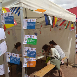 Le plus importante de notre projet était discuter avec les habitants du quartier et savoir ses avis sur plusieurs sujets du quartier. Comme ça nous avons crée et moi j'ai dessiné des cartes postales avec différentes questions, et les participants devaient le répondre derrière avec une phrase, dessin, poème, etc.